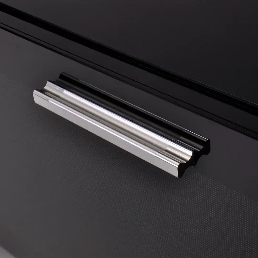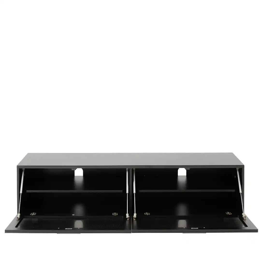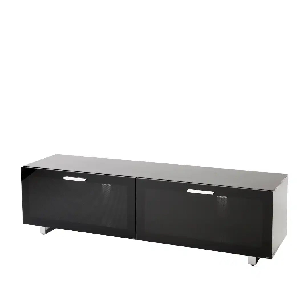 Sorrento Black High Gloss TV Storage Cabinet, Bonded glass top, Aluminium feet 1600 mm