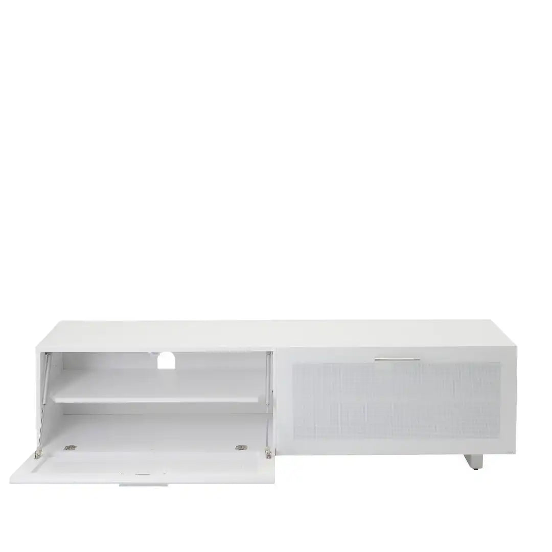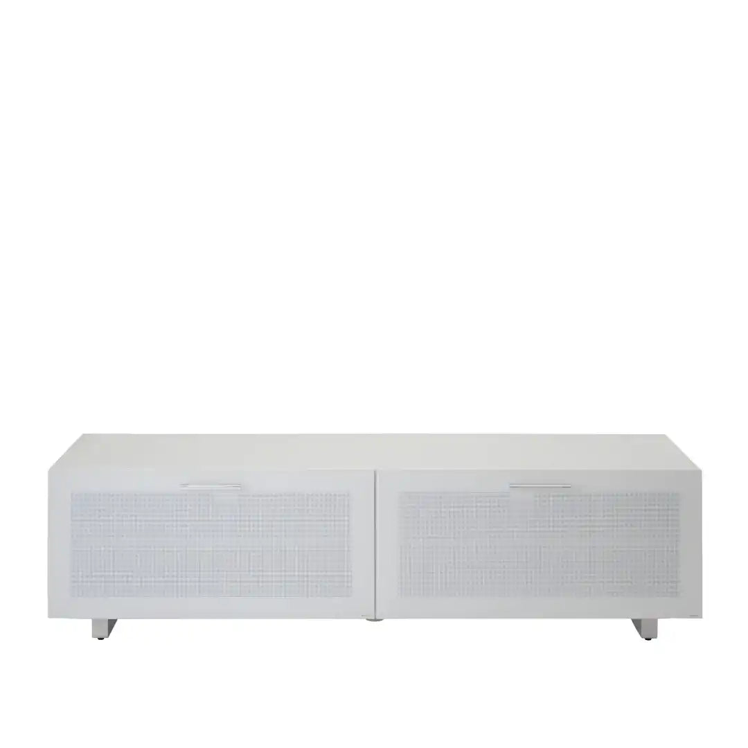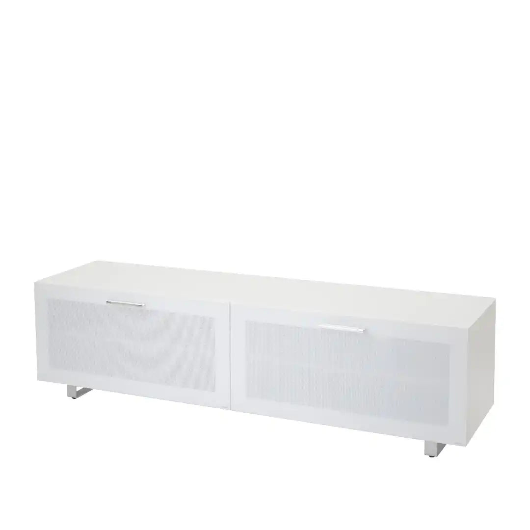 Sorrento White High Gloss TV Storage Cabinet, Bonded glass top, Aluminium feet 1600 mm