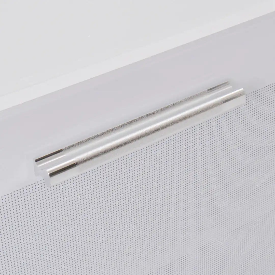 The Sorrento TV stand is elegantly finished with a colour-matched bonded glass top and matching glass drop-down front door (2 doors on the 160 cm cabinet). Remote-friendly printed matrix on the doors means all your electronic items remain hidden yet can be operated without having the doors open.