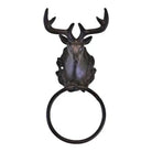 Wall mounted Rustic Towel Ring. Add a bit of character to your bathroom or shower room with this quirky, rustic industrial towel ring with a stag head design. Made from metal, this is wall mountable with pre-drilled holes. Made of cast iron with an aged finish to add character to any bathroom area. Measurements: 10 x 26 x 11.5cm