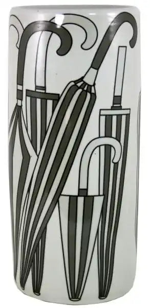 A glazed ceramic stick stand with a shades of grey umbrella design. This stylish design adds the perfect finishing touch to your home with a lovely modern design it is great for matching your decorating style in a traditional or contemporary setting. The umbrella stand has a brown speckled finish creating a vintage inspired appearance -perfect for using in the hallway as an umbrella or stick stand or great for using as a large vase for displaying a floral arrangement of dried flowers, twigs or branches. Features soft felt pads on the underside to protect your furnishings. This item is slightly distressed ceramic. This means during the manufacturing process slight imperfections have been deliberately created. These give the item an older more 'antique' look than it would have if it had been made to be perfect. These are meant to give the careworn and well used look of a much older item to a recently manufactured product. This distressed finish is not to be regarded as a fault. The internal diameter is 15cm and will hold several umbrellas. Measurements: 20 x 45.5 x 20cm