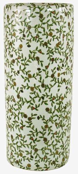 A glazed ceramic stick stand with a vintage green and white floral design. This stylish design adds the perfect finishing touch to your home with a lovely modern design it is great for matching your decorating style in a traditional or contemporary setting. The umbrella stand has a brown speckled finish creating a vintage inspired appearance -perfect for using in the hallway as an umbrella or stick stand or great for using as a large vase for displaying a floral arrangement of dried flowers, twigs or branches. Features soft felt pads on the underside to protect your furnishings. This item is slightly distressed ceramic. This means during the manufacturing process slight imperfections have been deliberately created. These give the item an older more 'antique' look than it would have if it had been made to be perfect. These are meant to give the careworn and well used look of a much older item to a recently manufactured product. This distressed finish is not to be regarded as a fault. The internal diameter is 15cm and will hold several umbrellas. Measurements: 20 x 45.5 x 20cm