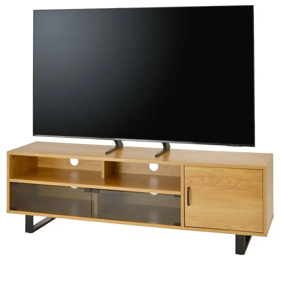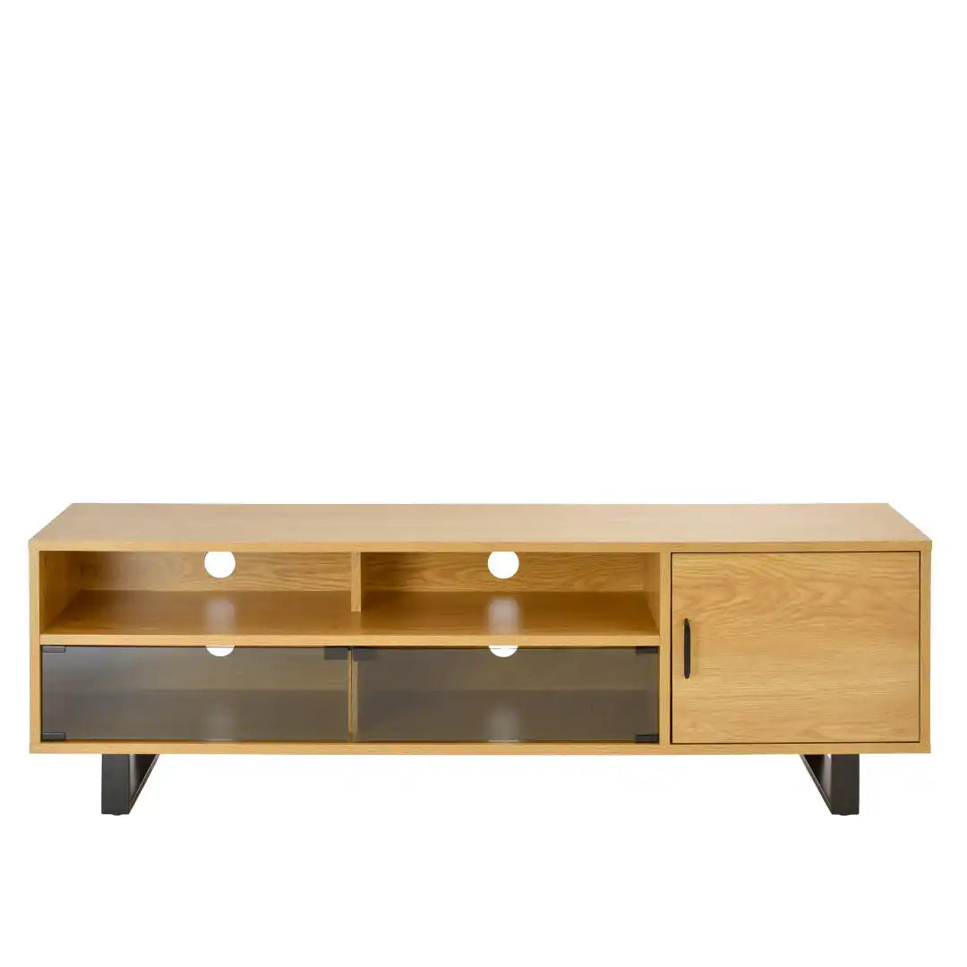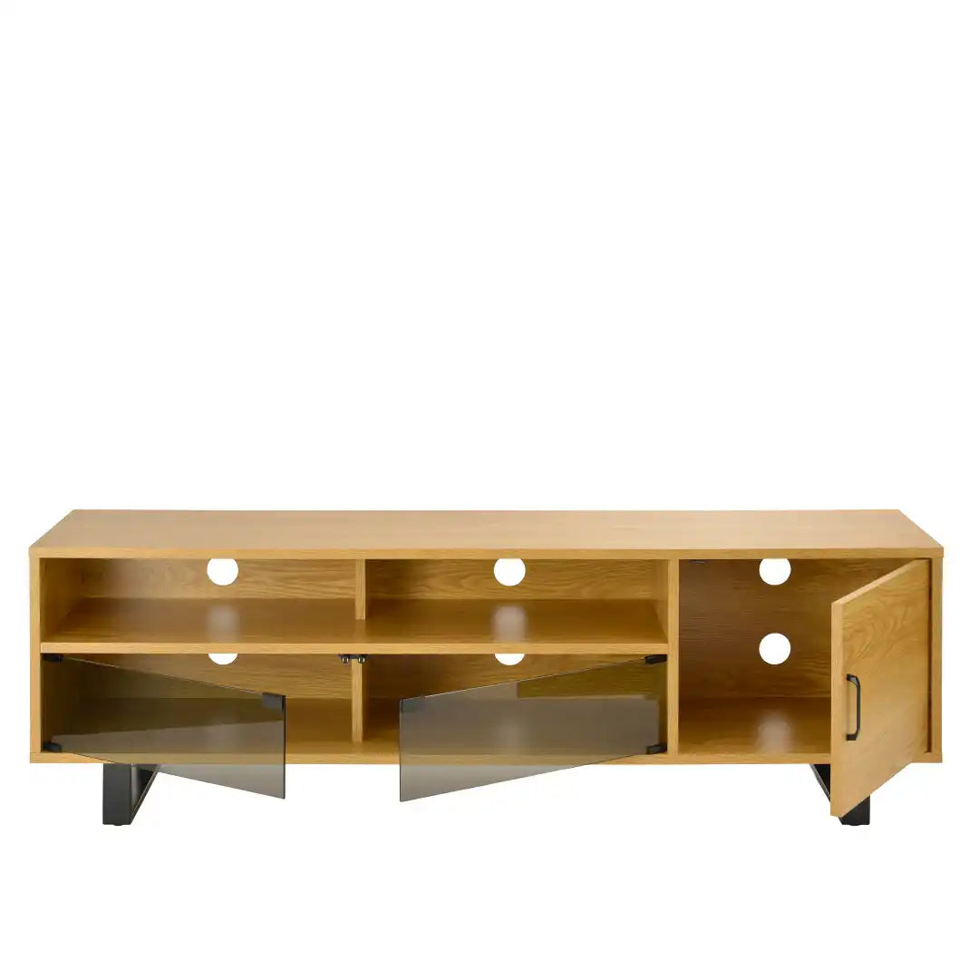 The Verona Cabinet TV stand will create an eye-catching focal point in your living room. It is finished with a light oak wood effect grain finish contrasted with black aluminium feet.