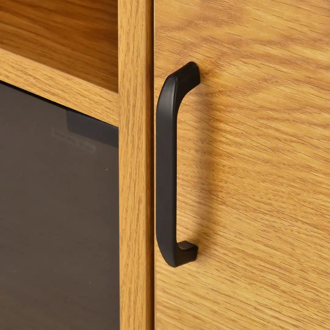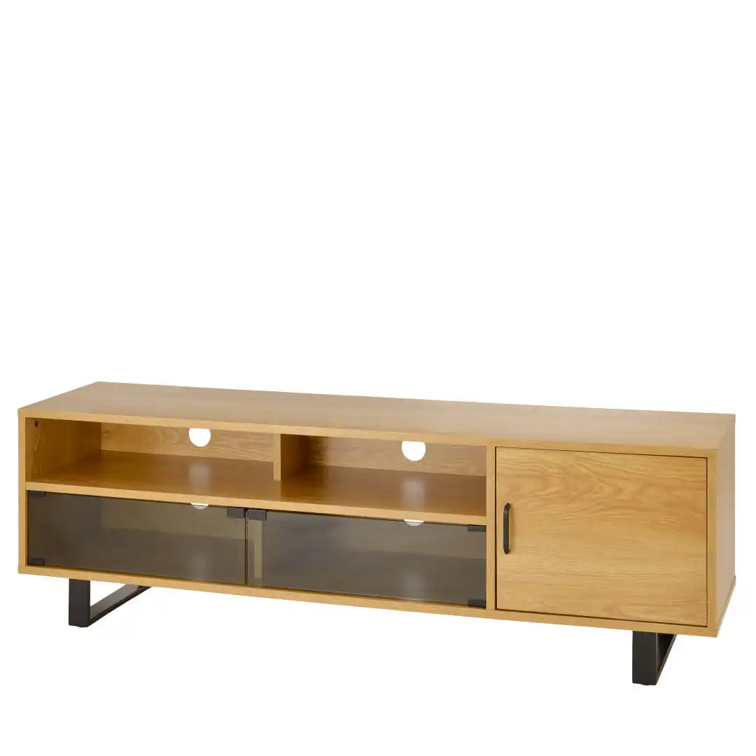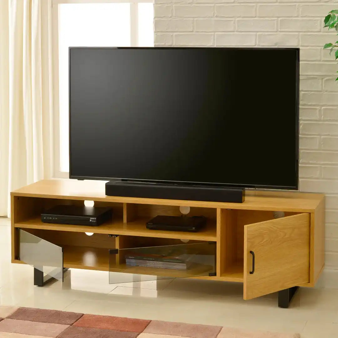 The Verona Cabinet TV stand will create an eye-catching focal point in your living room. It is finished with a light oak wood effect grain finish contrasted with black aluminium feet.