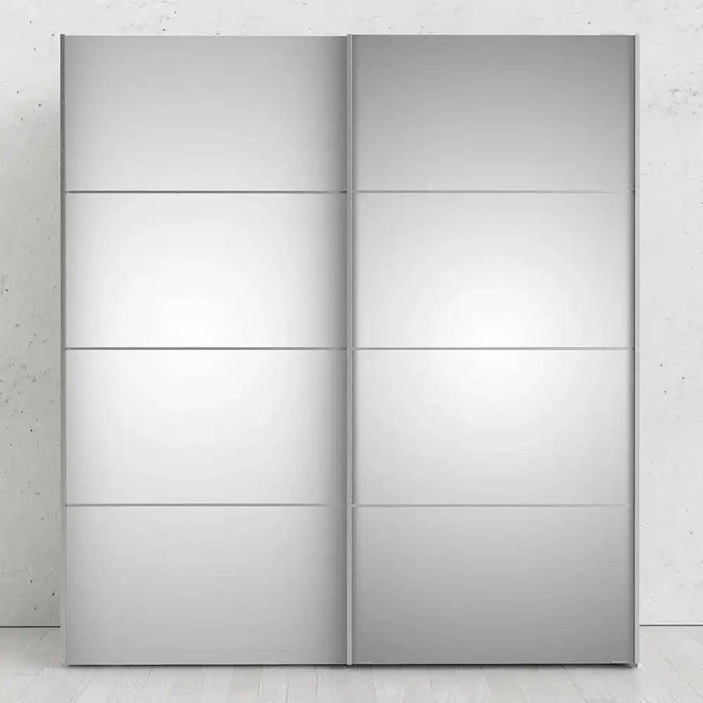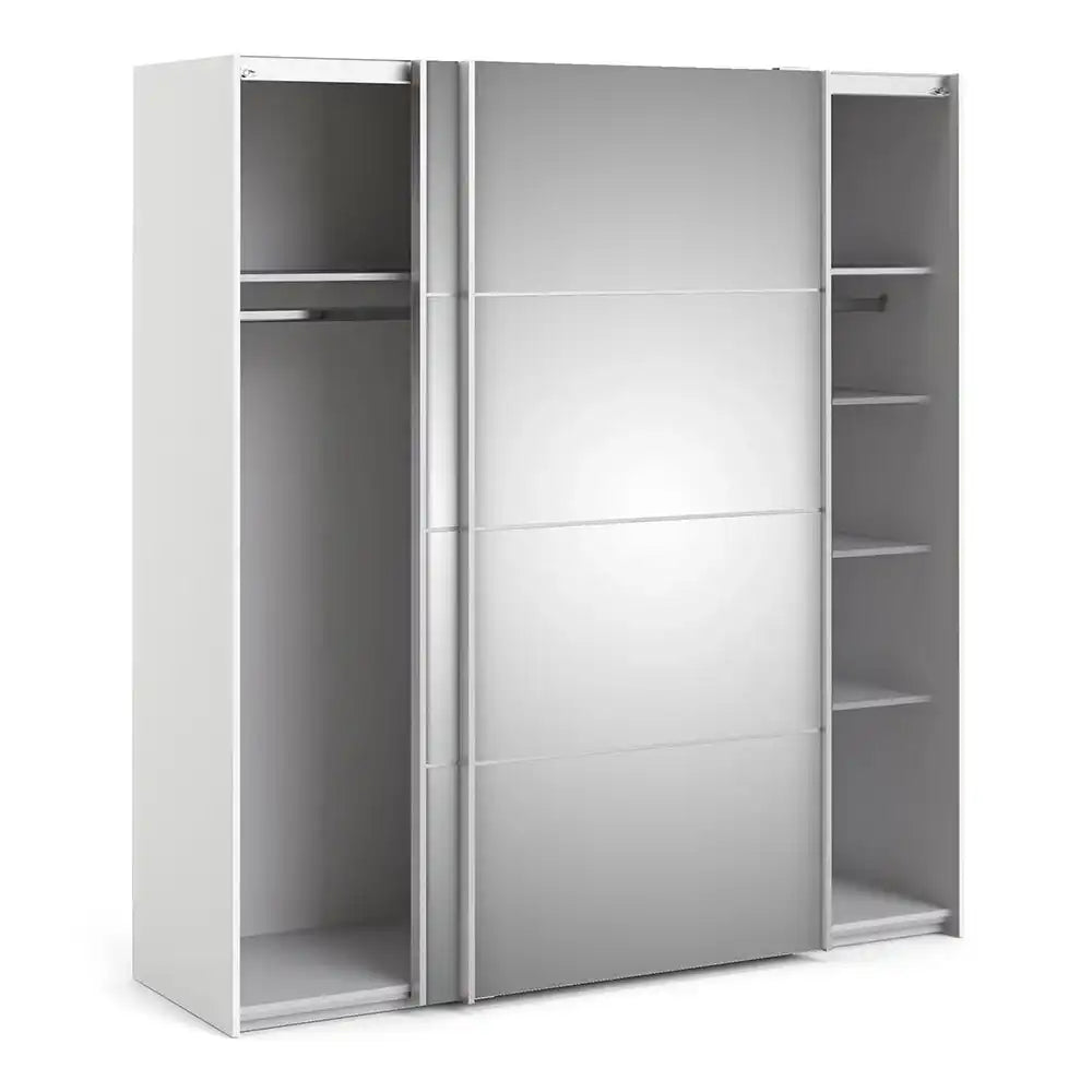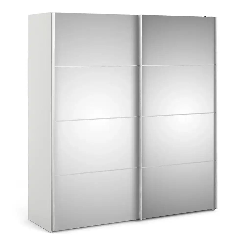 Verona Sliding Wardrobe 180cm in White with Mirror Doors with 5 Shelves