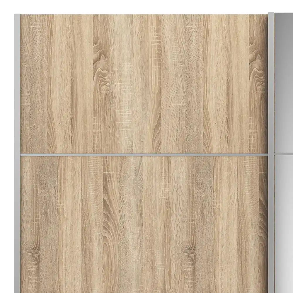 Verona Sliding Wardrobe 180cm in Oak with Mirror Doors with 2 Shelves