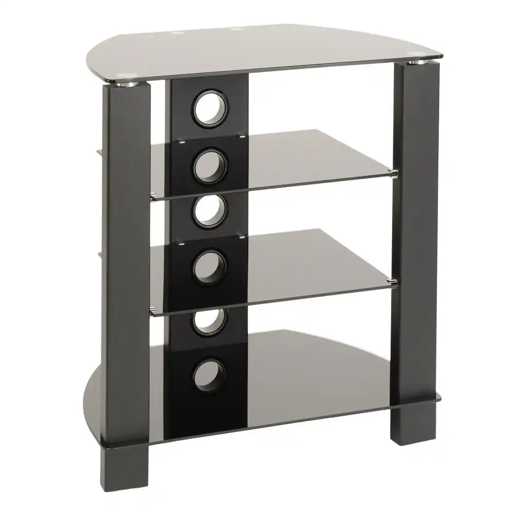 Featuring tempered glass shelves and wide legs, the Vision rack is sturdy enough to cope with the demands of a complete Hi-Fi system. Four shelves provide plenty of space for a turntable, CD player, streamer, and audio amp.