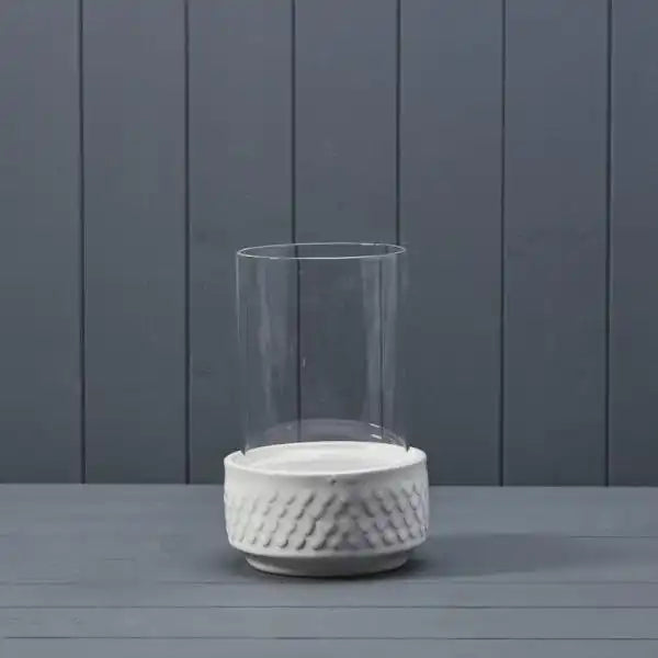 White Ceramic Lantern (22.5cm) D14.5*BD11 x H8cm Glass: D12*H15cm Product size: D14.5*H22.5cm Weight-950g