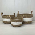 White/Natural Seagrass Set of Three Storage Baskets L-D32xH21cm,M-D27xH17,S-D23xH14cm Weight-973g