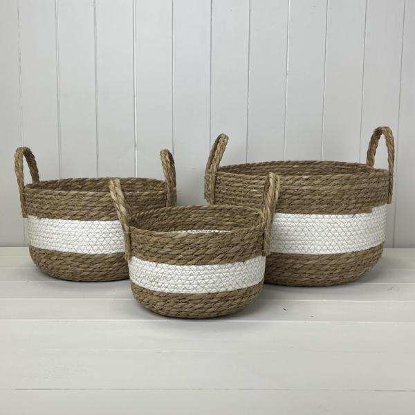 White/Natural Seagrass Set of Three Storage Baskets